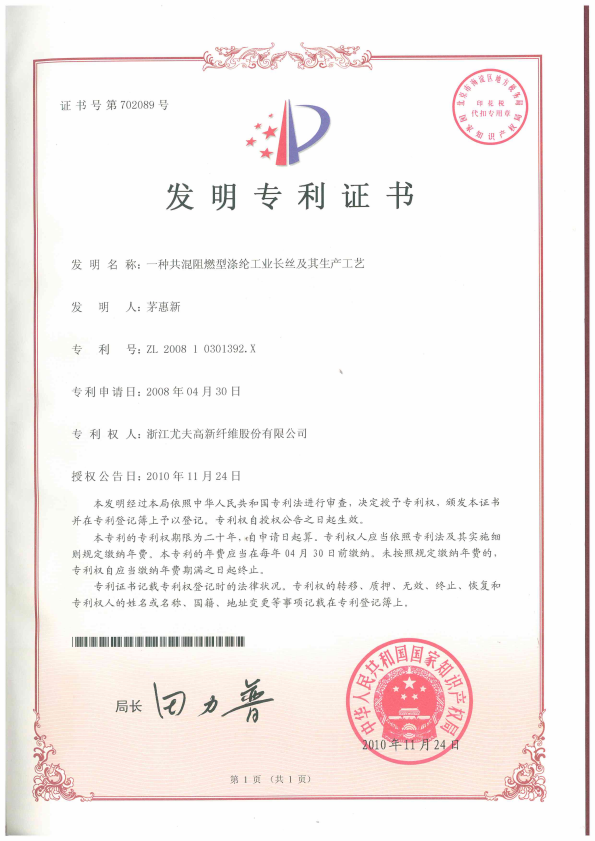 • 一種共混阻燃型滌綸工業(yè)長(zhǎng)絲及其生產(chǎn)工藝