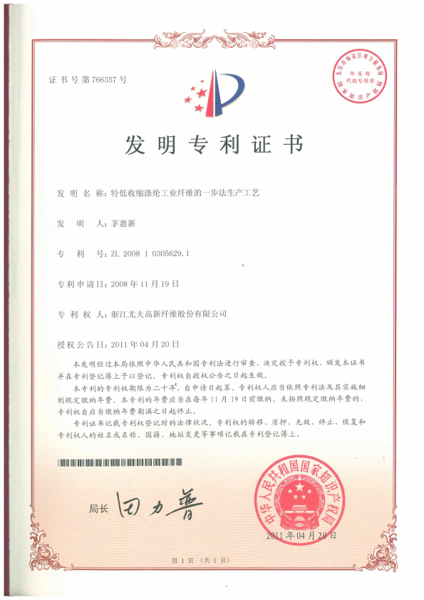 • 特低收縮滌綸工業(yè)纖維的一步法生產(chǎn)工藝