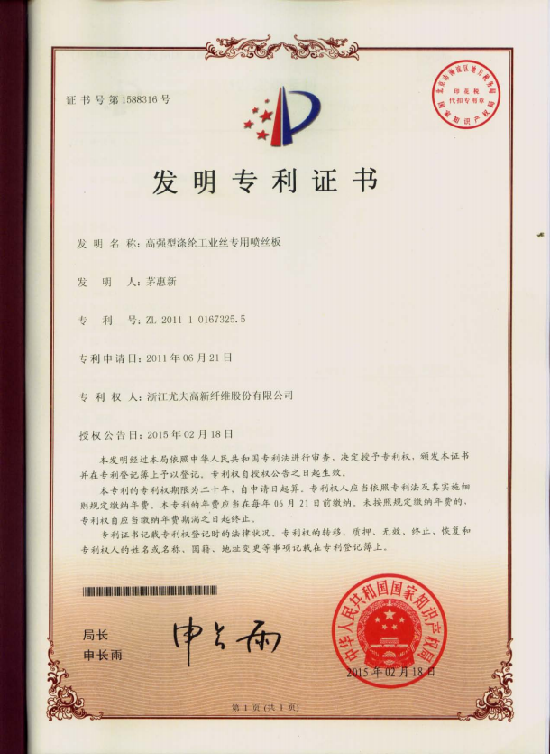 • 高強(qiáng)型滌綸工業(yè)絲專(zhuān)用噴絲板